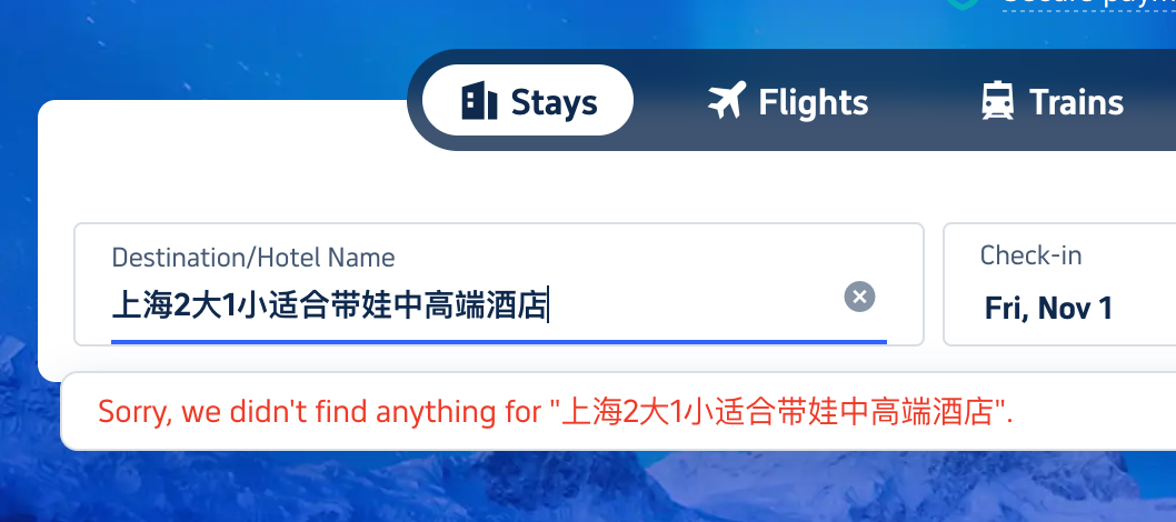 1)初次查询无结果 :用户在搜索框中输入“上海热门泳池酒店”,结果为空,找不到符合需求的推荐。