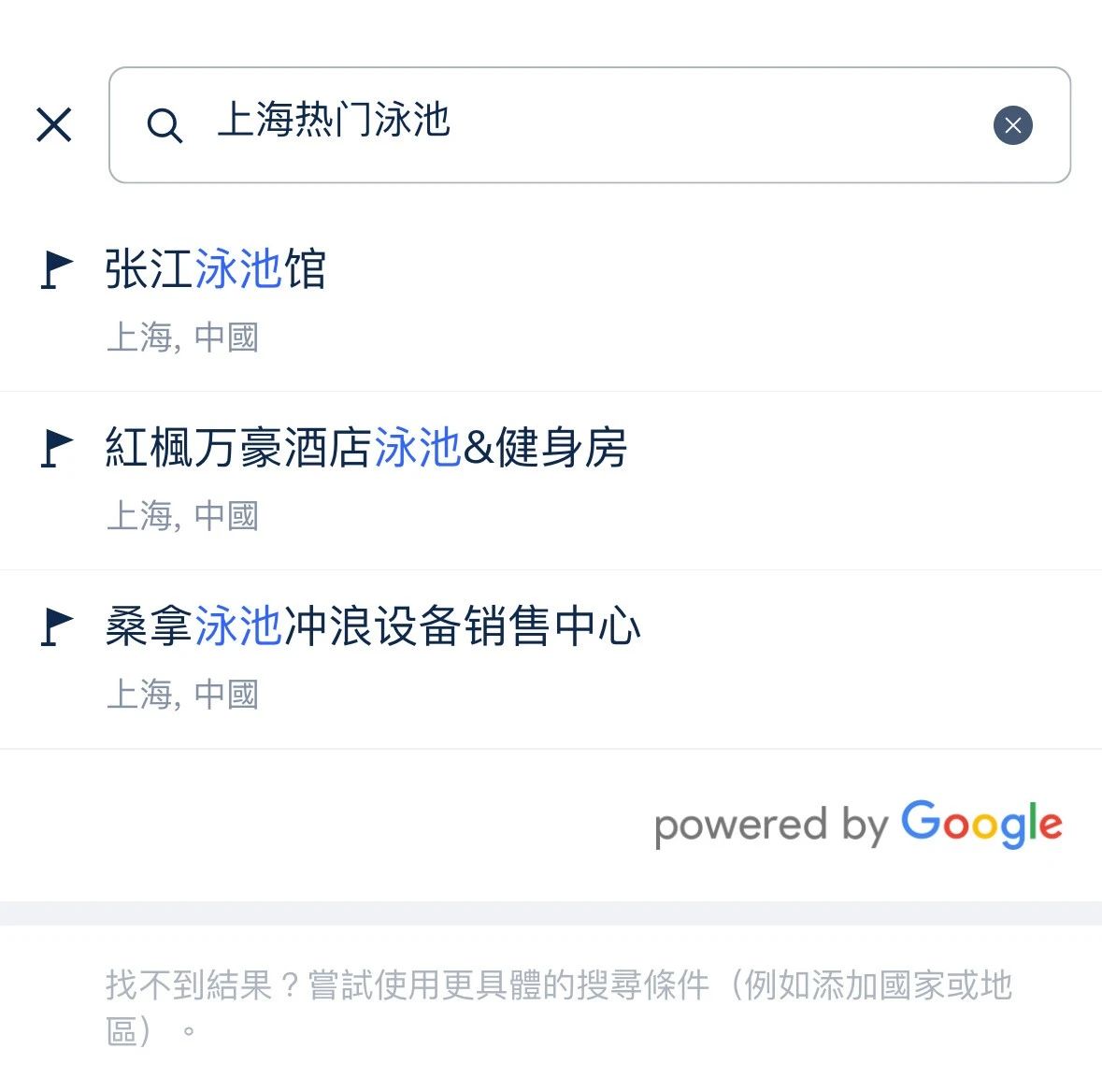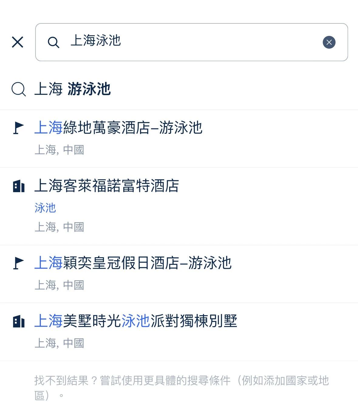 2)只能单独搜索“上海泳池”