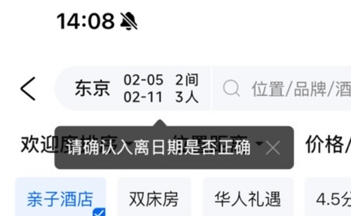 用户输入:东京2大1小2间房明年2月5入住7天亲子酒店推荐