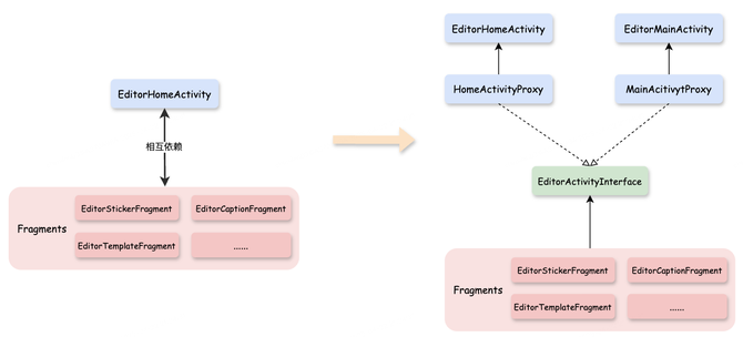 (2)代理层实现:旧界面Activity直接实现接口,保持原有逻辑。新界面通过代理机制,将函数路由到新架构的对应功能模块。