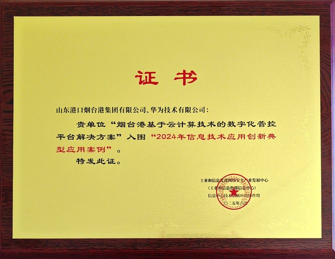 据笔者了解到,前不久工业和信息化部通报了2024年信息技术应用创新解决方案终评入围结果。由山东港口烟台港与华为技术有限公司联合研发的“基于云计算技术的数字化管控平台解决方案”从全国千余个参评项目中脱颖而出,成功入选国家 级典型应用案例。这是继该项目获评“2024年山东省信息技术应用创新解决方案”后,再度获得国家主管部门权威认证,标志着烟台港在信创领域的技术创新能力和行业标杆地位得到双重认可。