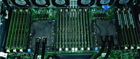 图5.安装在Dell Power Edge R740服务器中的直接芯片UniSCool液体冷却系统的图像。
