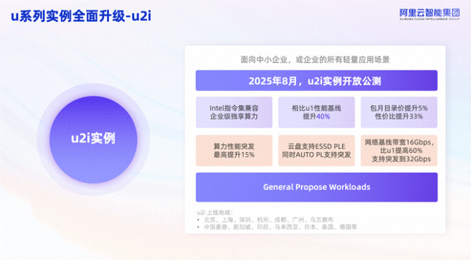 本次发布的u2实例可适用多个业务场景,基于Intel的u2i实例目前处于公测阶段,已在北京、上海、杭州、深圳等地域上线。
