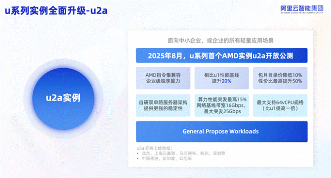 u1实例于2023年发布,广受企业青睐。在此基础上,全新推出的u2系列实例包含两款细分产品——搭载Intel处理器的u2i实例与搭载AMD处理器的u2a实例。