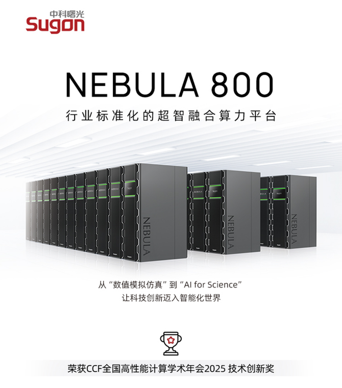 近日,2025CCF全国高性能计算学术大会(HPC China 2025)期间,中科曙光发布了国内首个行业标准化超智融合算力平台:Nebula 800。