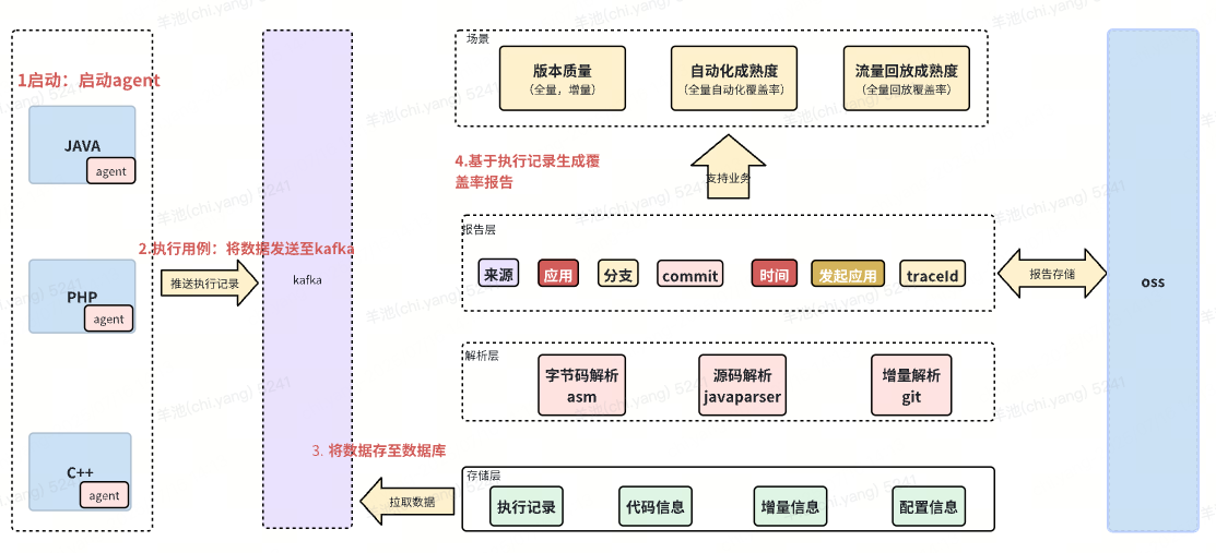 我们的创新方案:我们设计了一套以 Kafka 为中心的实时数据流架构,彻底解决了传统覆盖率报告分散、滞后、格式不一的问题。