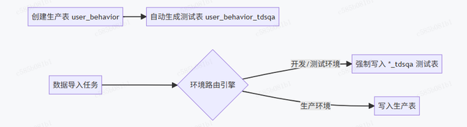 当开发人员在数仓管理模块创建生产表(如 user_behavior)时,系统会自动构建与之对应的完整测试环境体系。
