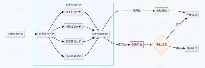 采用双轨检测技术(配置比对 + AST语法树分析)精准识别变更风险,并对核心任务实施严格审批。