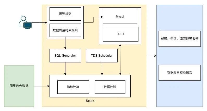 外部输入层:用户在TDS平台配置数据质量校验规则,指定数据源为图灵数仓表。