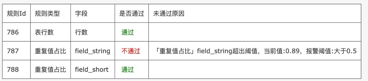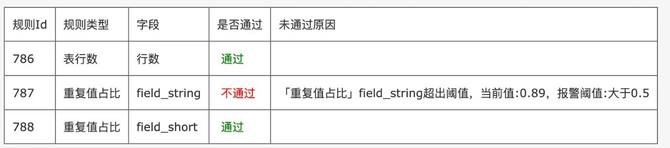 输出层:数据质量报告:生成可视化、结构化的报告,汇总约束验证结果。报告样例如下: