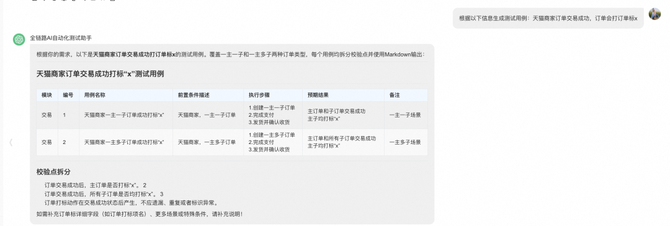 用例设计:AI通过分析用户对需求文档的核心内容解析,自动生成覆盖核心功能用例,由人机交互补充异常case,极大提升测试用例的设计效率。