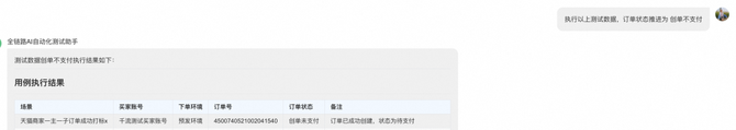 测试数据执行:通过从提示词中获取用户指令将测试数据推进到指定状态,支持批量执行;