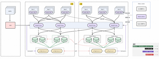 Redis-proxy 为代理组件,业务通过 proxy 可以像使用单点实例一样访问 Redis 集群,使用更简单,并且在Redis-proxy 上提供同区优先就近读、key 维度或者命令维度限流等高级功能;