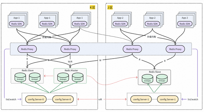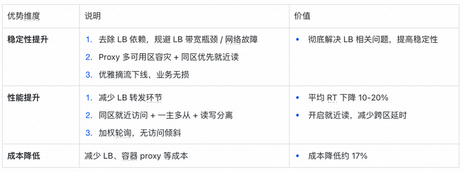 自建Redis通过自研DRedis SDK,通过SDK直连 proxy,不再强依赖 LB,彻底解决 LB 瓶颈和稳定性风险问题,同时,DRedis SDK 默认优先访问同可用区 proxy,天然支持同城双活就近读。