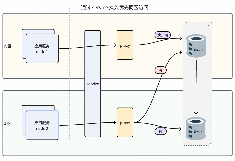 通过service接入方式支持同城双活就近读,是需要在 proxy 上统一开启就近读配置,开启后,对全局读请求均生效,所有读请求都默认优先同区访问。