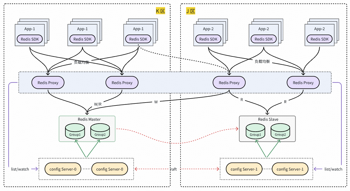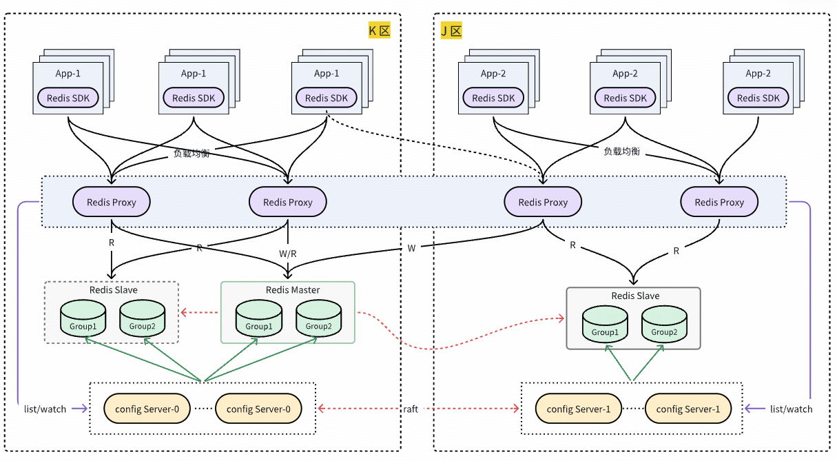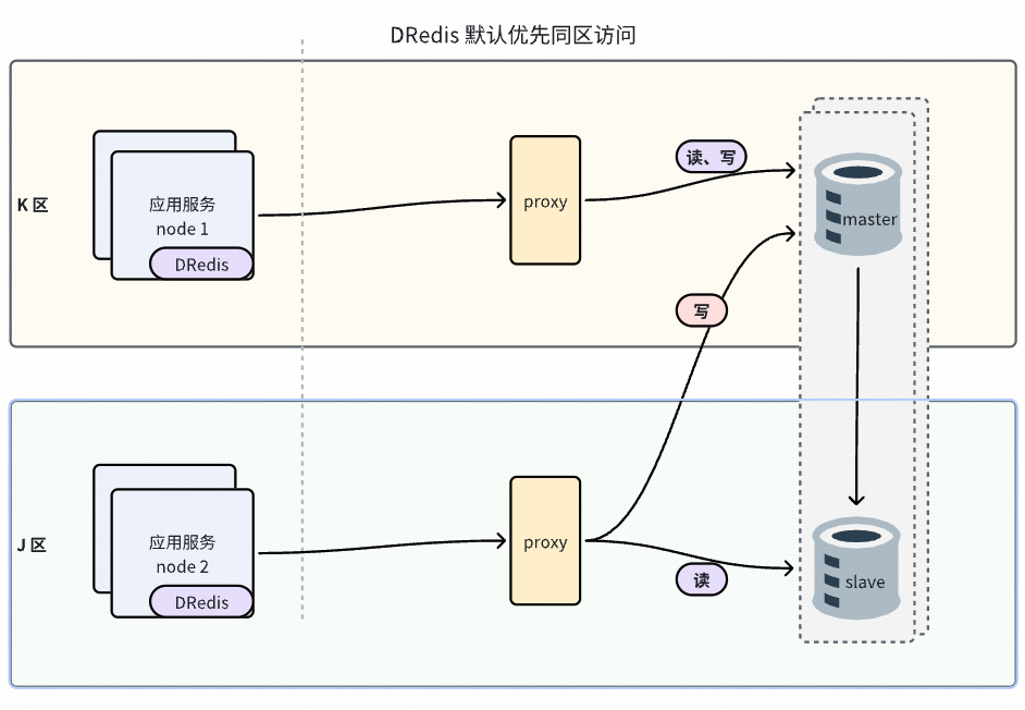 自建 Redis 自研 DRedis SDK 设计之初便考虑了同城双活就近读需求,DRedis 访问 proxy 时,默认优先访问同区proxy。