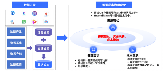 随着百度各业务及产品的快速发展,海量的离线数据成本在持续地增长。在此背景下,通过大数据治理技术来帮助业务降本增效,实现业务的可持续增长变得至关重要。我们通过对当前资源现状、管理现状以及成本现状三个角度进行分析: