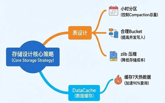 通过小时分区与合理的 Bucket 数,降低 Compaction 频次与资源消耗;