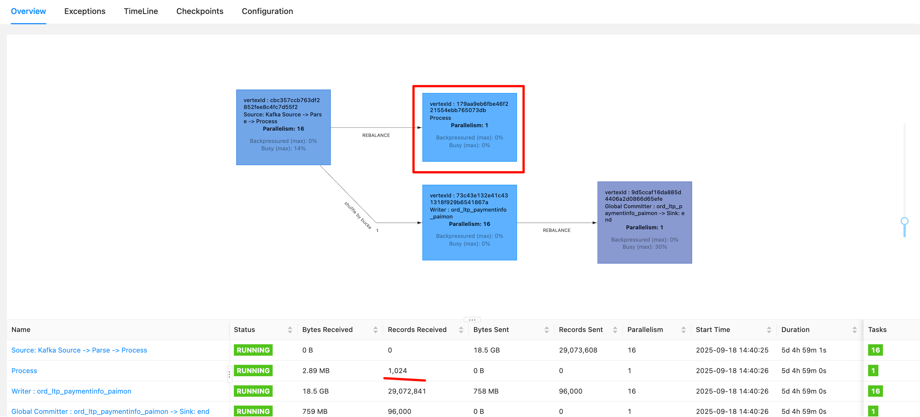 如下图 3 所示,即使你设置了并行度为 16, 实际的工作线程其实为 1。 这个环节存在较大的性能瓶颈。