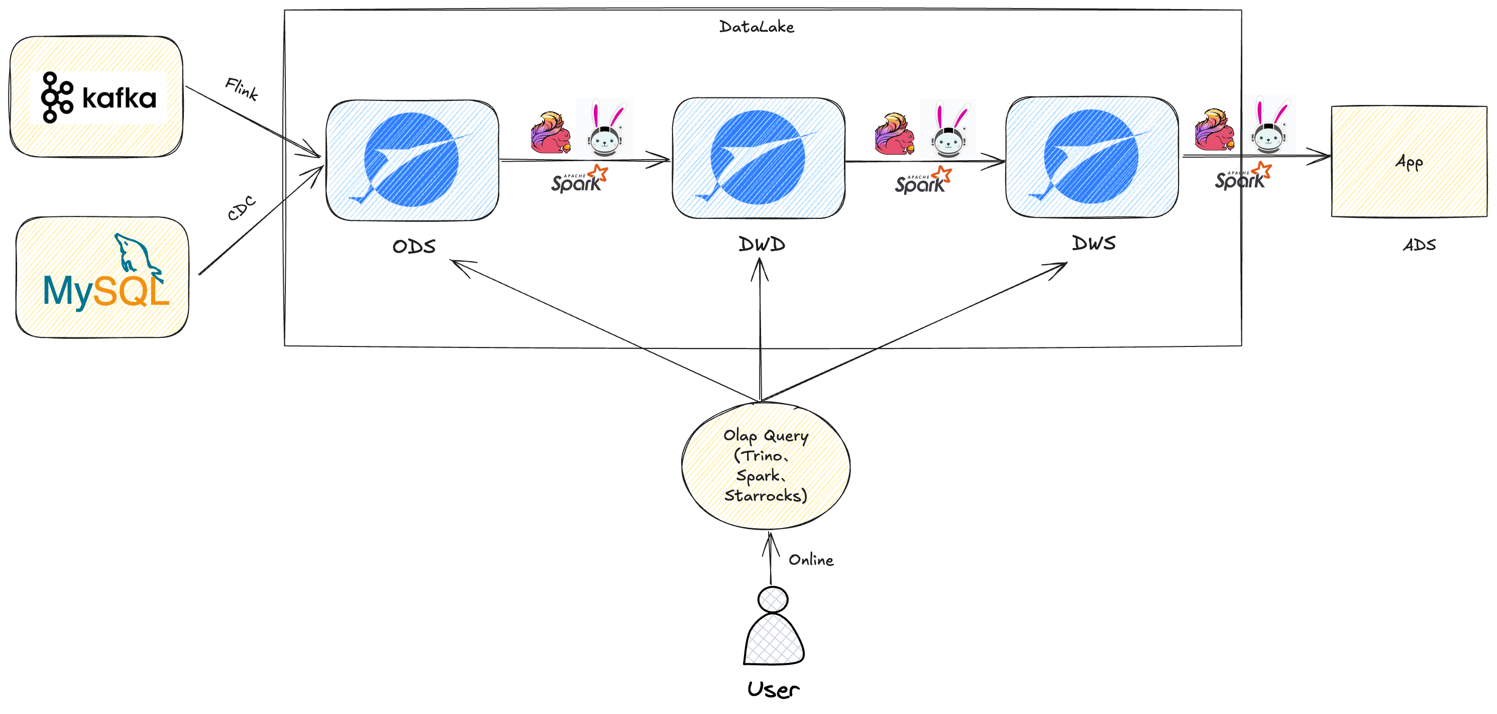 灵活的 Ad-hoc 查询与离线分析:借助 Trino 或 Apache Spark 引擎,对湖内数据进行灵活的即席查询与大规模批处理分析。