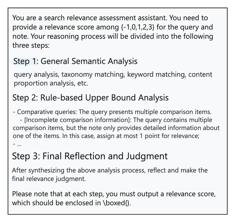 核心思想是 —— 让模型像人类评审员一样遵循规则、循序推理,而不是一上来拍脑袋给答案。