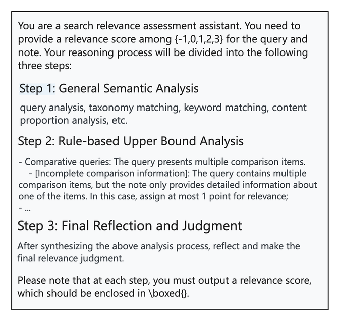 但目前行业方案仍面临两大瓶颈:(1)大多数方法依赖人工或其他模型合成的推理数据,成本极高且最终模型泛化性不足;(2)开域搜索语义复杂、意图多变,仅靠通用推理很难稳定泛化,尤其是小红书这种开放内容生态中,用户搜索话题覆盖生活、商品、问答、知识等多维场景,推理逻辑如果没有领域规则指引,往往会“想太多或者想错方向”,和业务团队的预期相差较远。