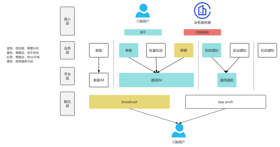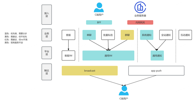 平台层:按IM架构设计系统,目标是实时、有序的触达用户,平台层可扩展