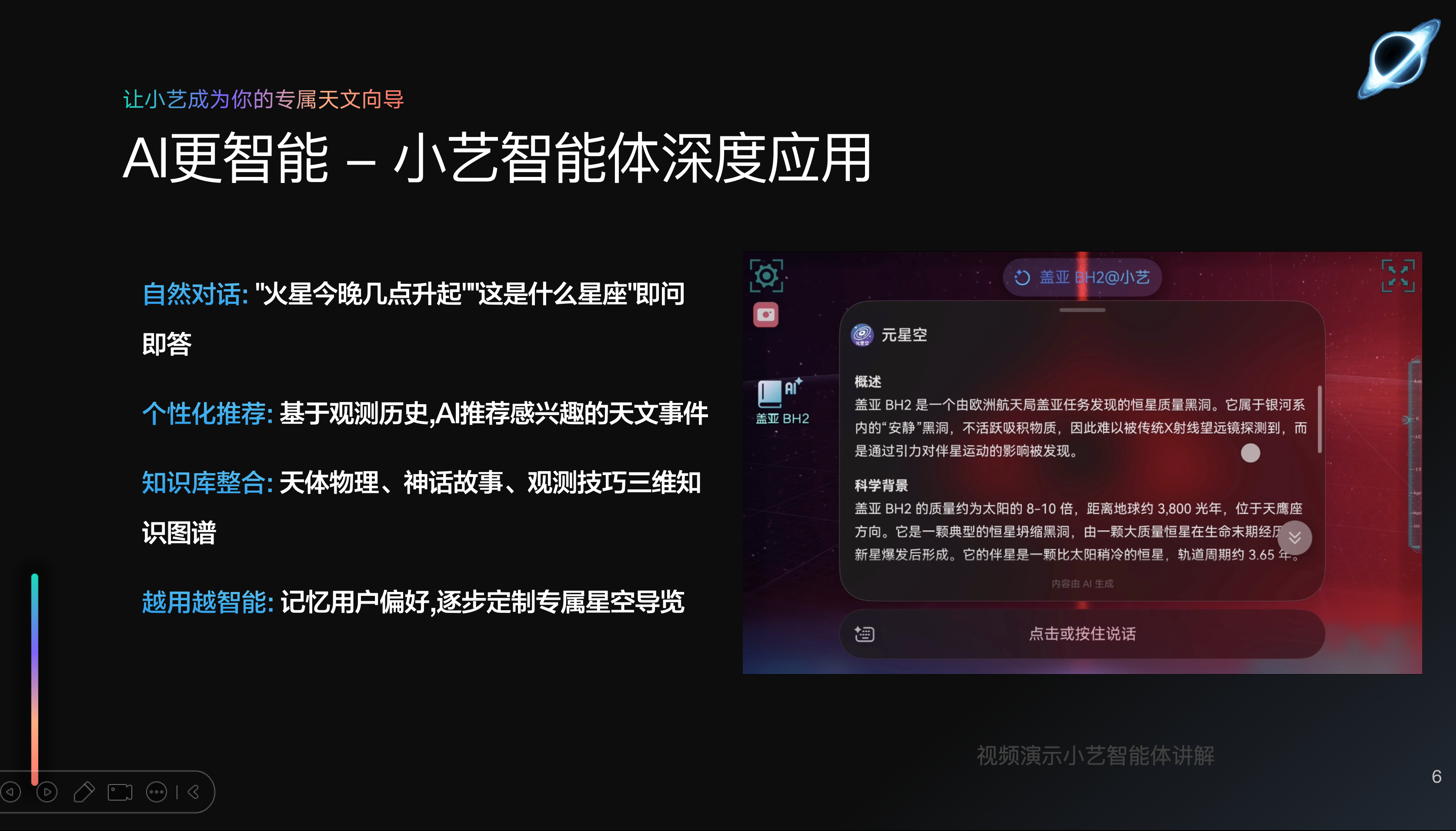 如果说端侧TTS解决了听的问题,那么深度集成“小艺智能体”,则解决了问与答的智能化难题。“元星空”团队没有满足于简单的指令唤醒,而是基于小艺智能体的开放框架,创建了一个专属的“星球Agent”。
