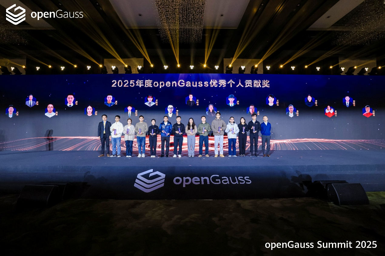 社区的繁荣离不开每一位贡献者的辛勤付出。大会颁发了 “2025年度openGauss社区突出贡献单位” 及 “2025年度openGauss优秀个人贡献奖”,对在过去一年中为社区技术演进、生态推广、应用落地做出杰出贡献的企业与开发者予以最高荣誉,他们的智慧与热情是openGauss生态持续繁荣的根本动力。