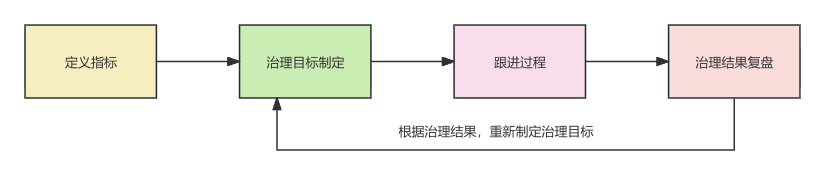 通过定义指标 -> 治理目标制定 -> 跟进过程 -> 治理结果复盘不断的迭代循环治理,形成一个闭环,且各业务域也在不断的调整治理目标,直到最终达成平台的治理目标,使得大仓各应用的稳定性的治理都能达到不错的效果。