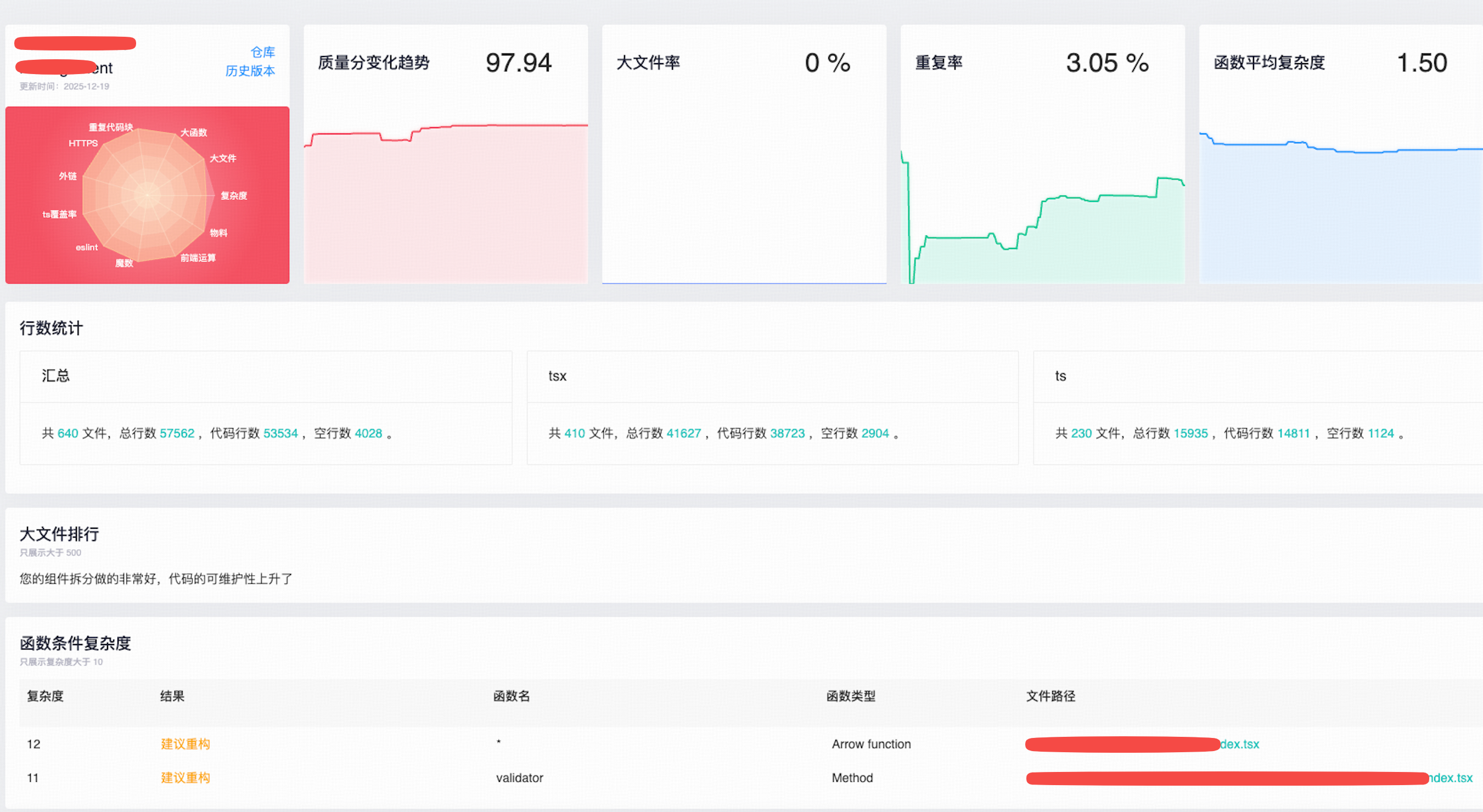 应用代码重复率:代码重复率是体现大仓应用代码可复用的重要衡量指标,代码的复用性越好,代码的重复率就越低,可复用的代码就越稳定,进而提升应用代码的稳定性。