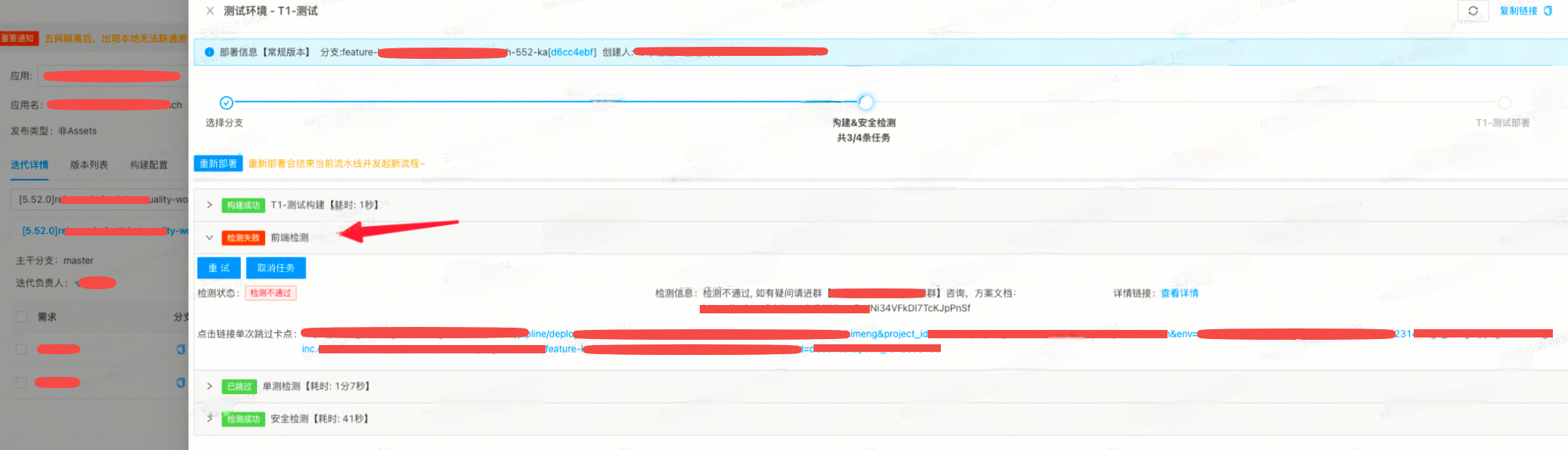 为了避免研发本地的一些不规范流程操作带来的线上稳定性问题,在应用测试环境的构建发布流程新增流程卡点,如下所示: