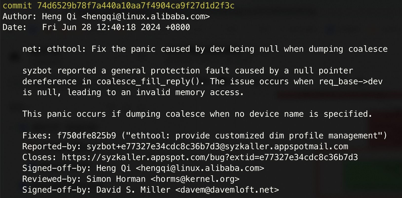 Fix-Bisect + Fixes 匹配:在上游主线仓库中发现,自 commit 74d6529b78f7 起,该崩溃不再出现;