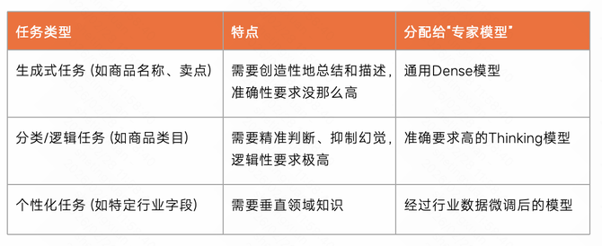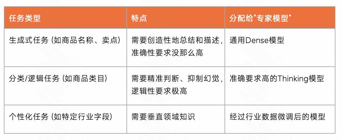 为此,快手磁力引擎技术团队设计了一套兼顾成本与效果的优化方案——MoM(Mixture-of-Models)混合模型策略。其核心思想可简洁概括为:“分而治之”。它将复杂的商品识别任务拆解成不同类型,再将各类任务分配给最擅长处理该领域的“专家模型”,实现优势互补、高效协同。