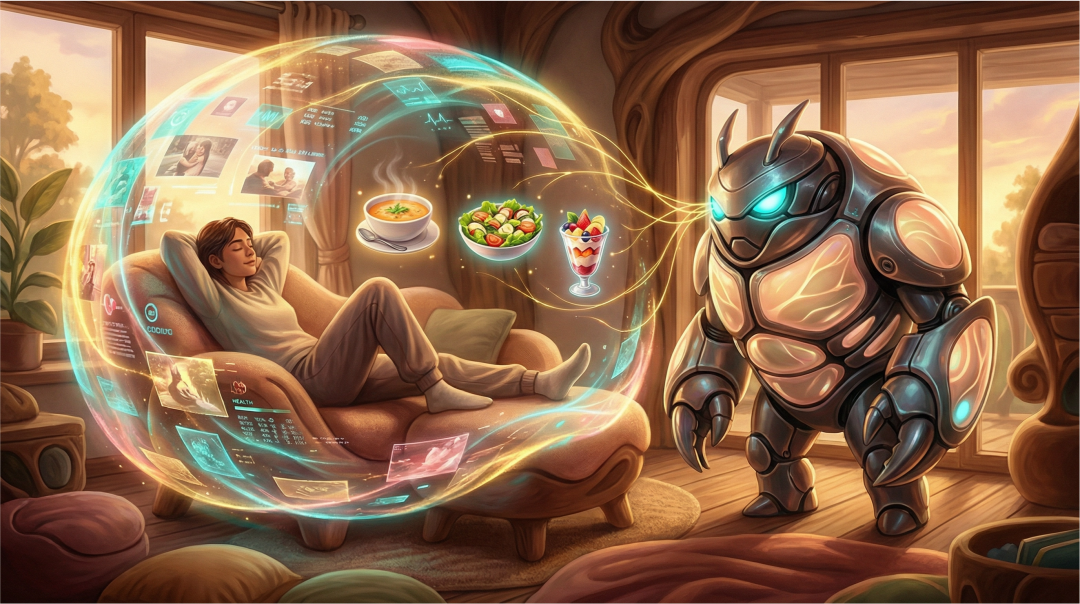 就拿“XX点外卖”的交互体验来说,它仍然是在迎合人类过去的使用习惯:你需要主动输入一堆字、或者发语音告诉它“我想吃什么”。可如果类似 Openclaw🦞 这类个人助理型智能体未来人手一个,你真的还需要这样做吗?有没有可能一定是:它基于对你最近状态的理解——兴趣、行为、注意力,甚至通过终端连接到你的健康数据——形成对你的独特记忆(本质上类似人类对家人、朋友偏好的理解;技术上我们称为“记忆”)。然后在你需要吃饭的时间点,直接推送几个最合适的选择,你甚至不需要明确地 “yes or no”。