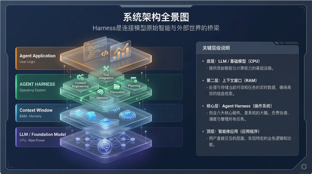 技术小圈子里也有一些通用智能体理论概念的讨论,包括 Anthropic 团队的人也在提及的一种新的技术架构,并把这种概念称为 “Agent Harness”。这种技术架构我认为可以准确概括这种通用智能体产品技术。当然 Manus、还有 OpenAI Cloud Codex 这种云端的产品,会有一些更复杂的系统工程技术。