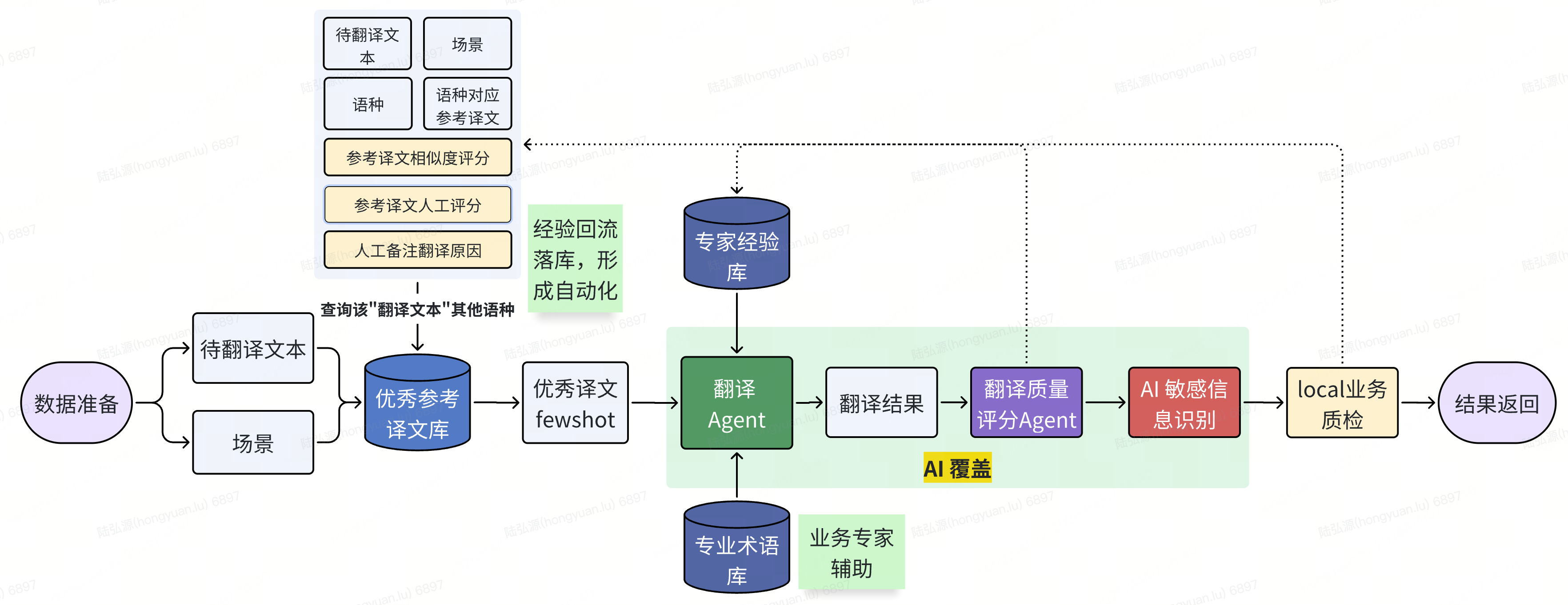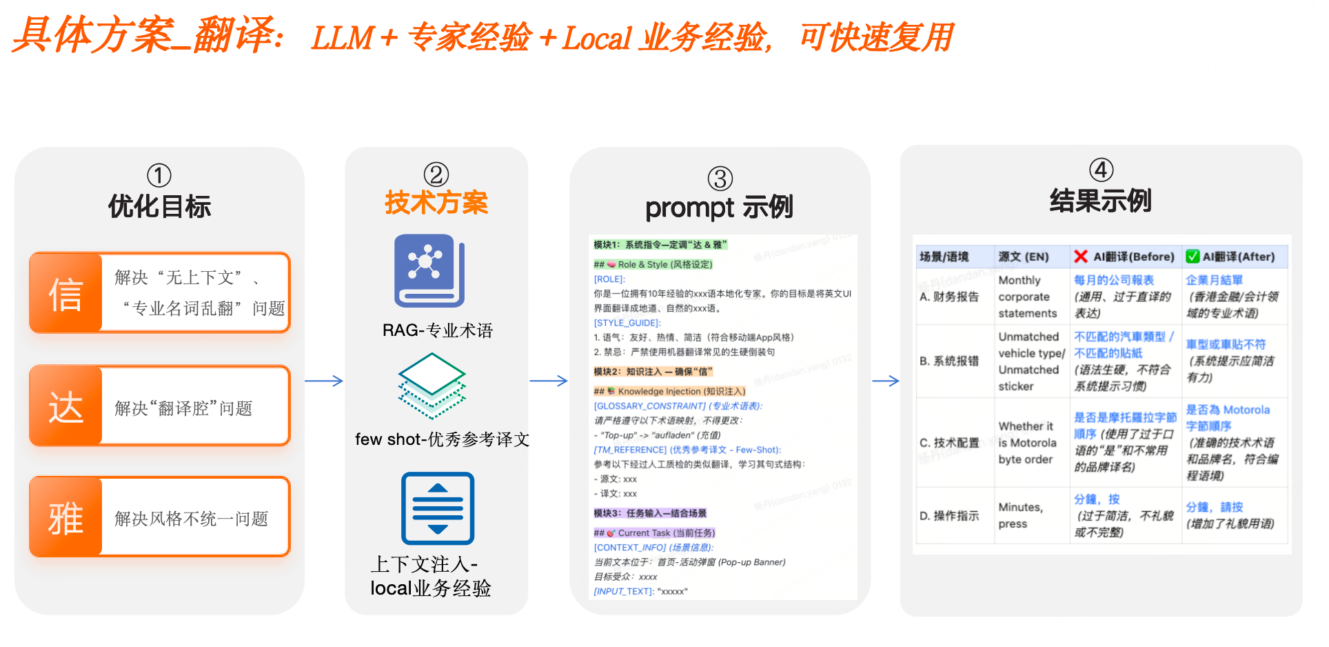 在翻译Agent中,我们通过「专业术语库」、「优秀参考译文Few-shot」和「上下文注入」这一套组合拳,实现了直追人工的翻译效果。