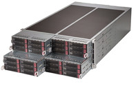 整合是如今数据中心的最大主题,而Super Micro公司提供了大量的系统可供选择以帮助用户来解决这一问题。鉴于本篇测评的目的,我们使用了一台SuperServer F627R3-R72B+型,这台超级服务器是一台单一4U机箱的四节点服务器。该系统与三节点的联想RD340型集群一起被用于测试VMware VSAN的最初版本。